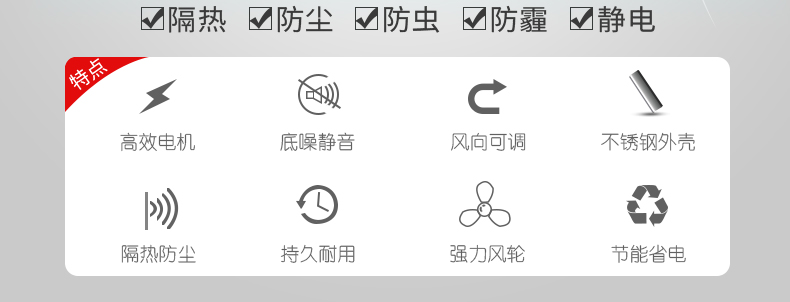 3、獨特導風板設(shè)計,風向可隨意調(diào)節(jié),并適用各種使用環(huán)境;