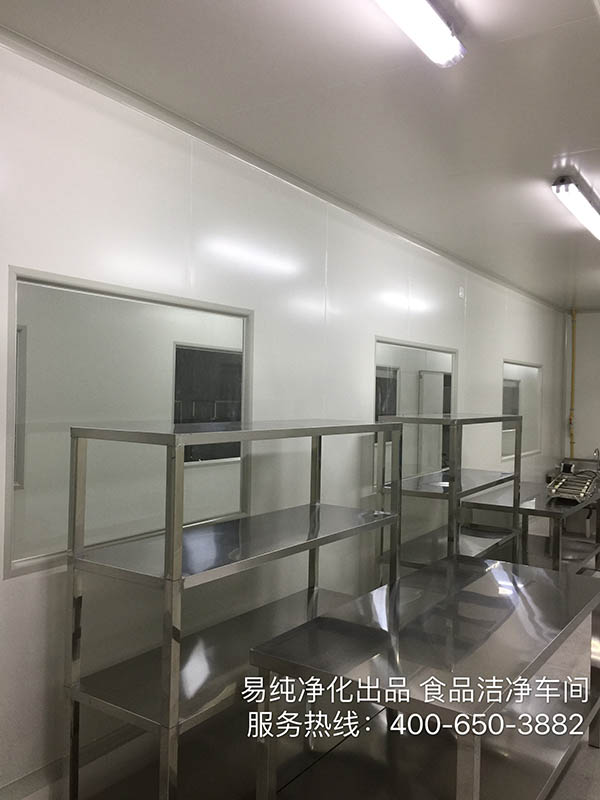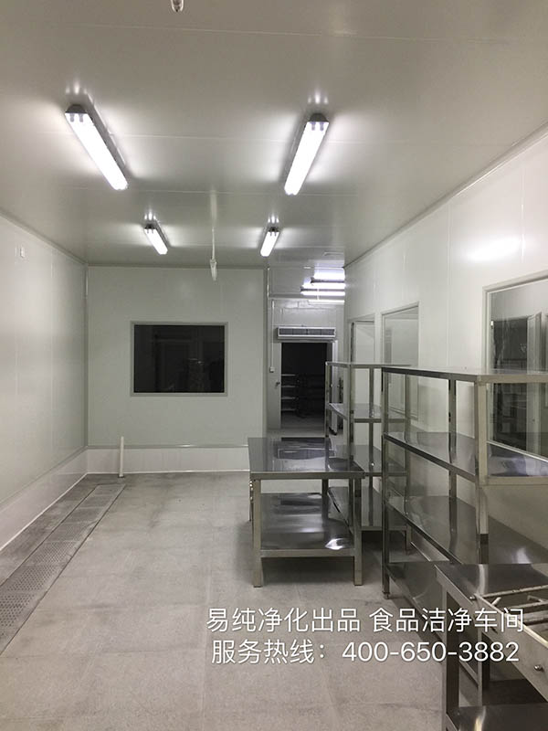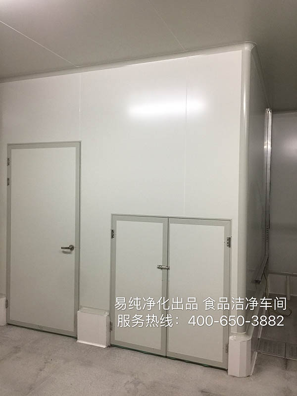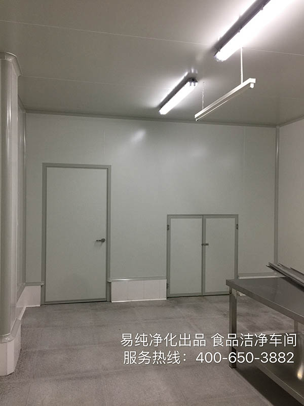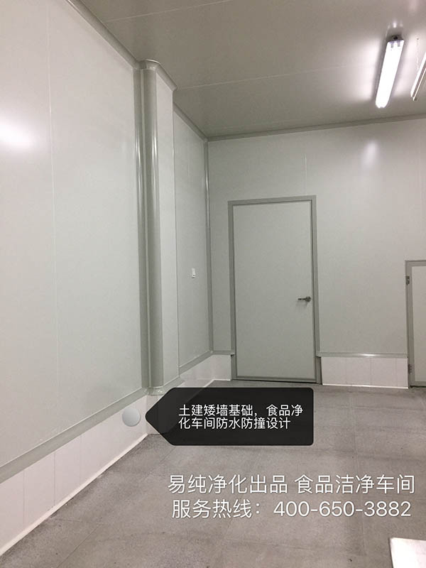 本次新安裝的凈化車間屬于溧陽新華廚食品有限公司的一期生產車間,主要以青團產品,從產品的來料檢驗入庫,到原料加工,攪拌,成型,蒸者,冷庫入庫,全部都是在凈化車間內生產和加工。考慮到食品生產車間的水份較多,同時每天要用清水對地面進行沖洗,常規的凈化車間板材長期被水浸泡和沖洗會有一定的影響,同時內部物流小推車的頻繁進出更易對凈化板材進行撞擊,本次設計采用了下部磚墻設計,下部凈化板材和門窗的結構。這樣設計安裝,可以使凈化車間的使用效果得到最大發揮,同時可以有效保護凈化板材墻體。