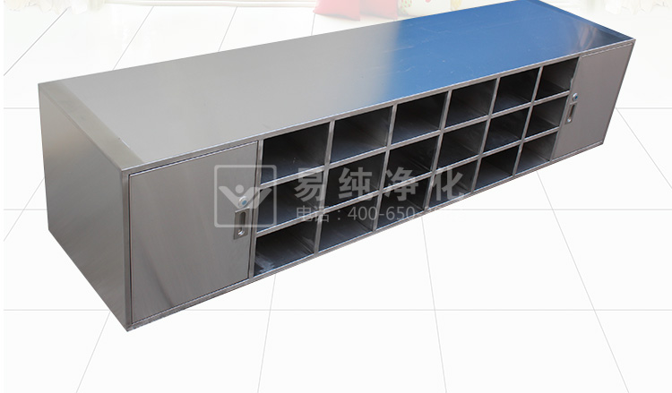 不銹鋼鞋柜(不銹鋼更鞋凳)是凈化車間標(biāo)配產(chǎn)品,采用SUS304不銹鋼制作,表面拉絲處理;通常形式有雙面單層交叉S形鞋柜,雙面雙層樣式以及雙面或單面多層多格樣式;具體可根據(jù)客戶要求制作;