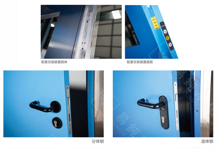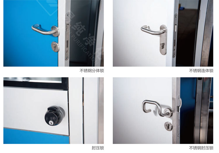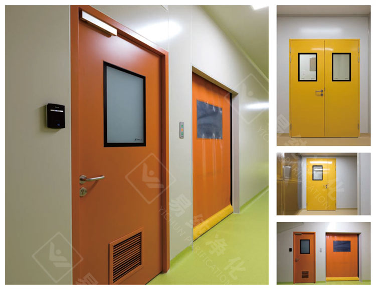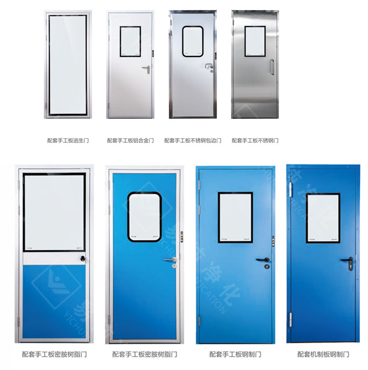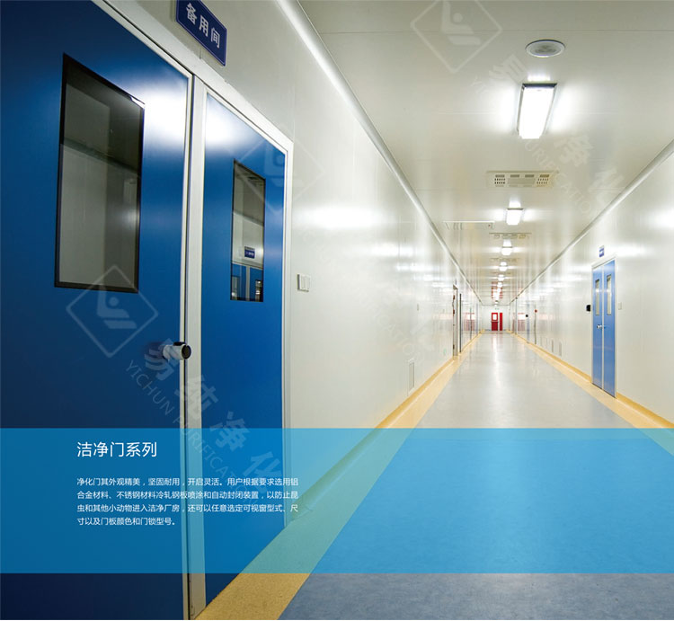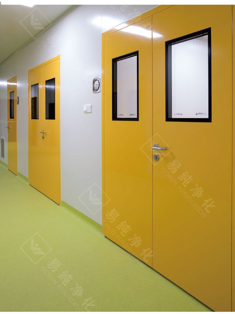 凈化門其外觀精美,堅固耐用,開啟靈活。用戶根據要求選用鋁合金材料、不銹鋼材料冷軋鋼板噴涂和自動封閉裝置,以防止昆蟲和其它小動物進入潔凈廠房,還可以任意選定可視窗型式、尺寸以及門析顏色和門鎖型號。