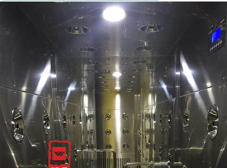 名稱:風淋室(又名空氣浴塵室、風淋房、風淋門、空氣吹淋室、AIR SHOWER,風淋設備,風淋機之類)是人員進出無塵室所必需的通道,并同時起到氣閘室密閉無塵室的緩沖作用,是進行人員除塵和防止室外空氣污染無塵室的有效設備,也是目前凈化車間人員通的必需設備。