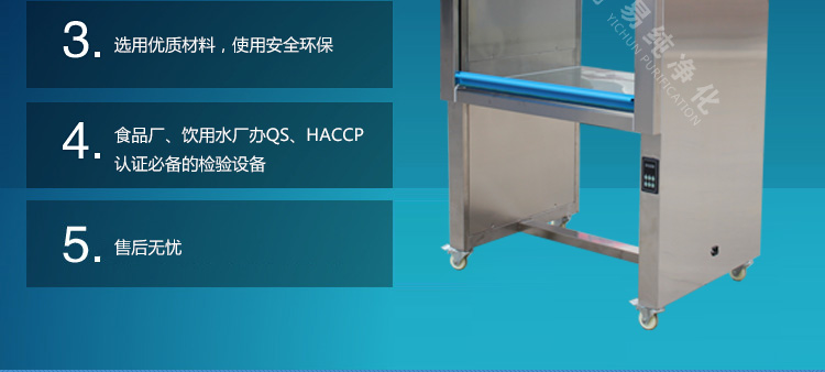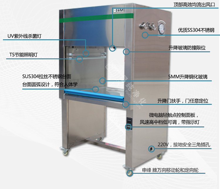 安全可靠的保障措施: 嚴(yán)格按照國際電氣安全標(biāo)準(zhǔn)規(guī)范設(shè)計,確保產(chǎn)品具有多重安全保護措施,采用柔光型的照明燈與紫外線殺菌燈控制單獨控制,同時需要注意的是紫外線殺菌只能在工作前開殺菌,在人工作時不允許開紫外線殺菌燈,避免紫外線殺菌燈對人體皮膚造成灼傷。