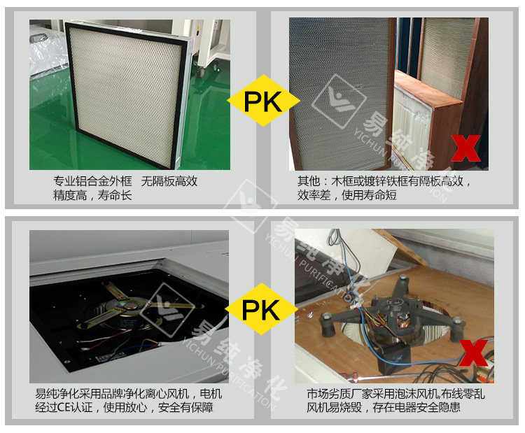 1.氣流流型:垂直層流(從上往下吹,進風(fēng)口在頂端,初,中,高效三級過濾);